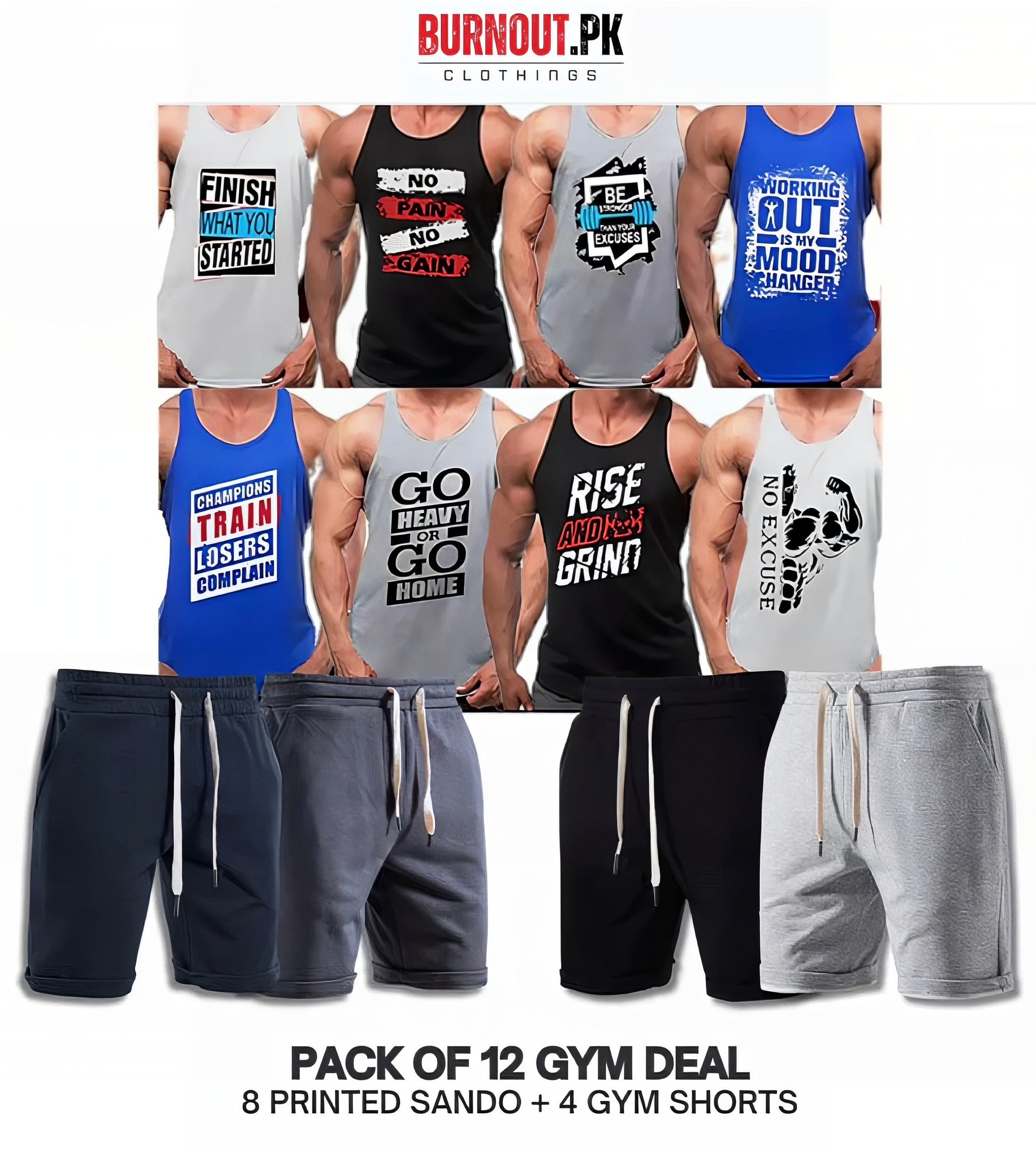 Pack of 12 Deal (8 Printed Sando Tanks & 4 Shorts)
