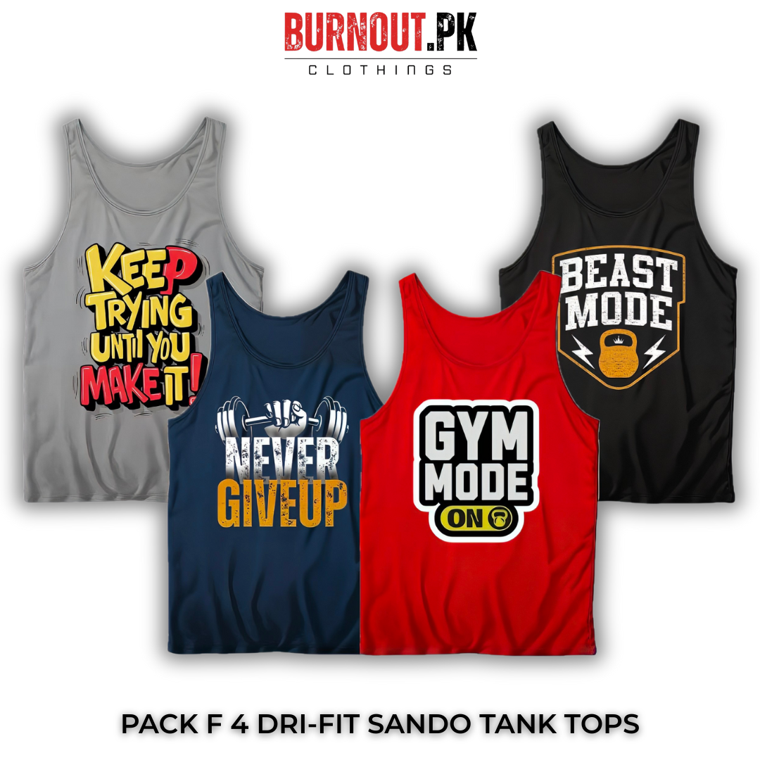 Pack of 4 Printed Gym Sando Tanks