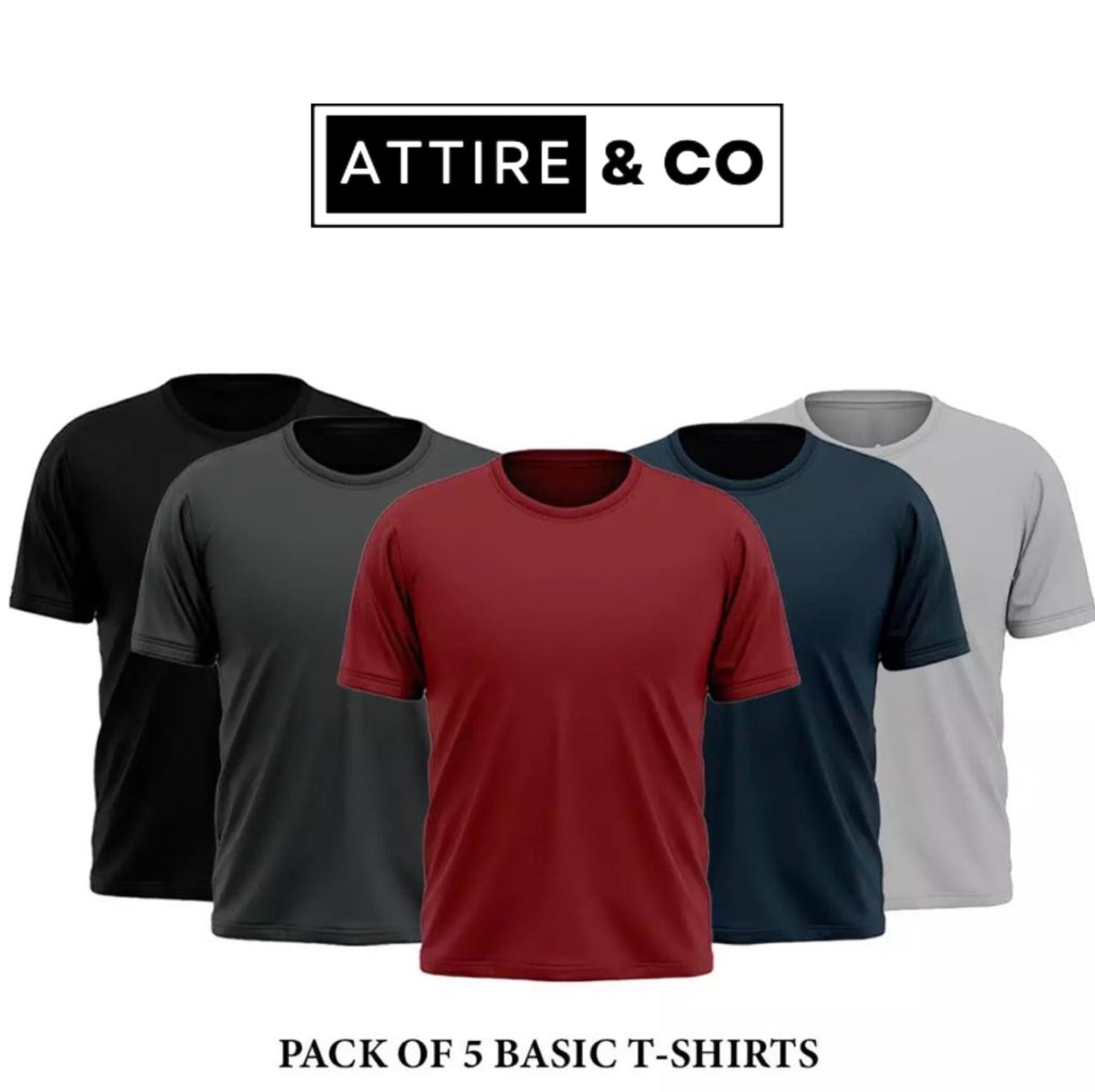 Shop for this pack of solid Black, Charcoal, Maroon, Navy Blue and White half sleeve t-shirts, available exclusively at Attire & Co.